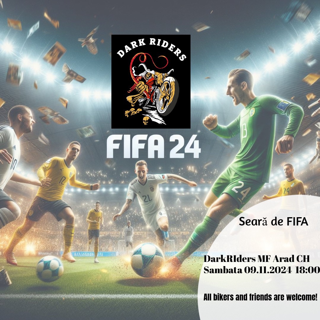 Dark Riders MF Calea Aurel Vlaicu 270, Arad, RomaniaAvem plăcerea de a vă invita la evenimentul nostru: Seara de FIFA pe PlayStation, care va avea loc pe 09 noiembrie 2024, începând cu ora 18:00!Veniți să ne bucurăm împreună de cele mai intense meciuri de fotbal vazute pe un proiector. Fie că ești un jucător experimentat sau doar vrei să te distrezi alături de…